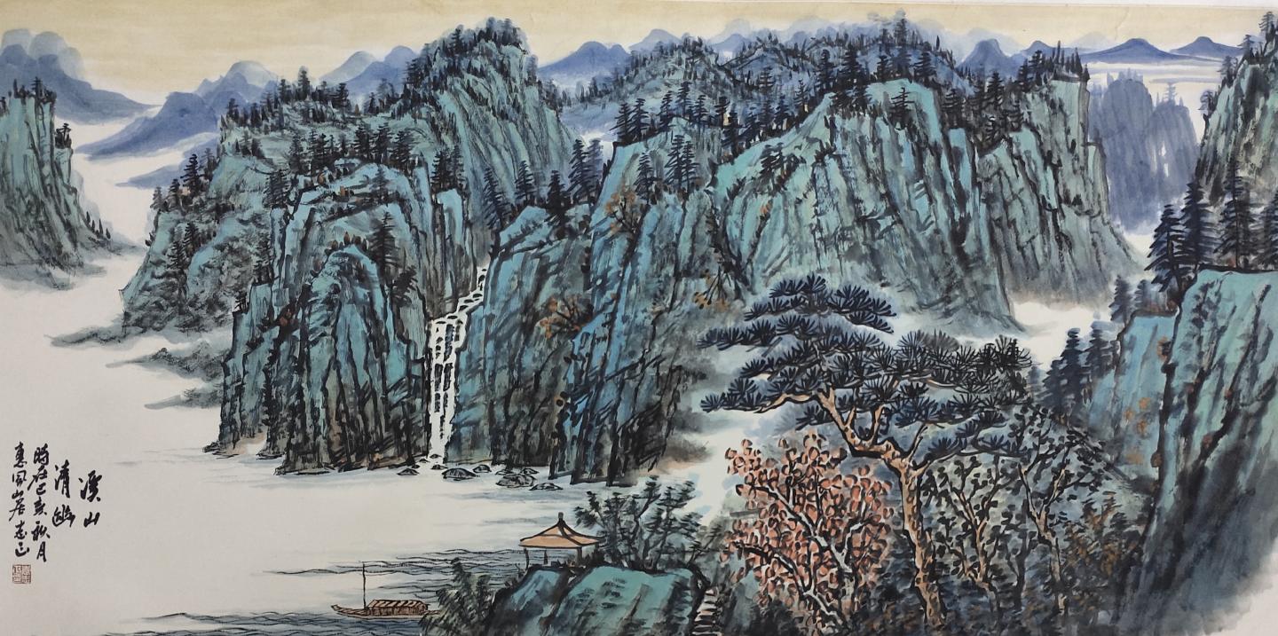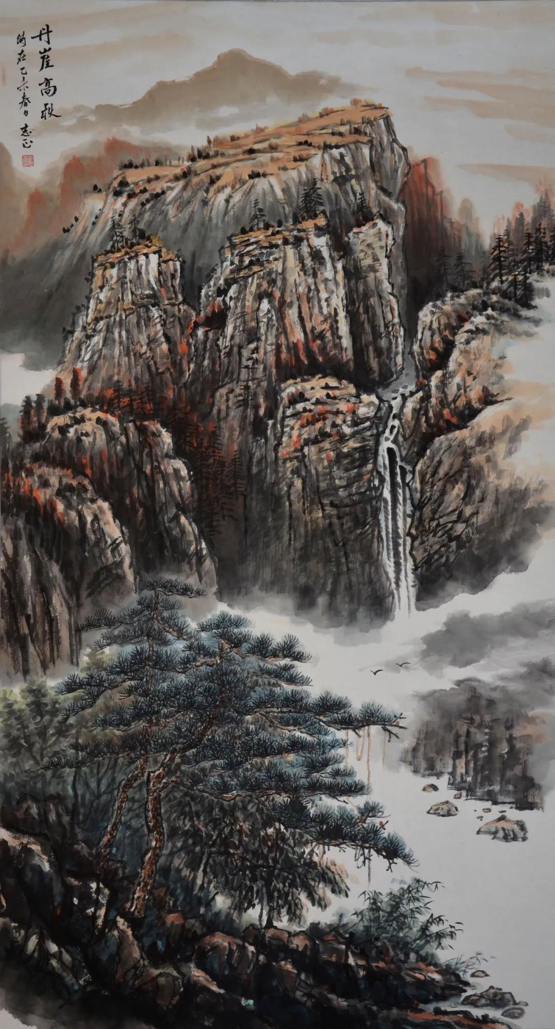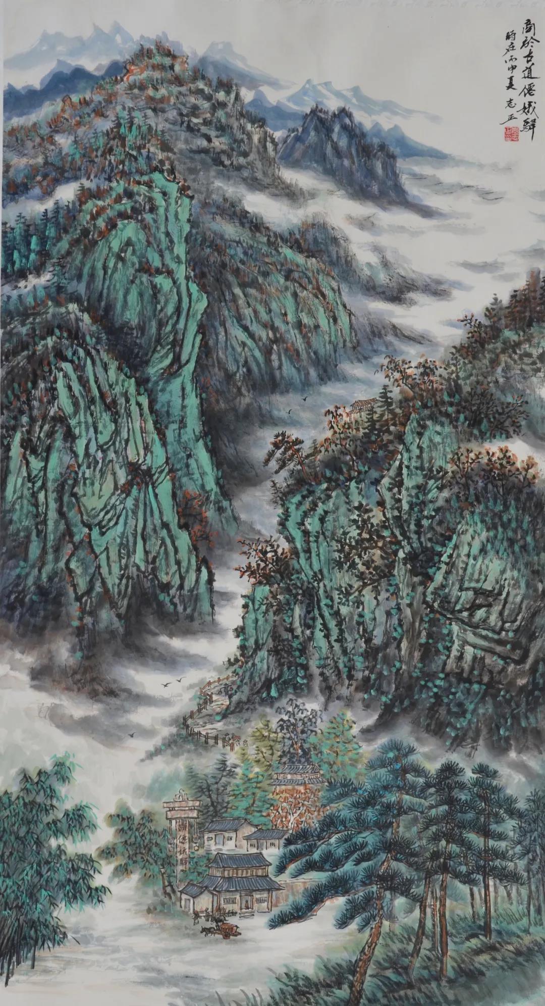 本次布展別出心裁,用原風(fēng)原貌的秦嶺鄉(xiāng)村建筑元素分隔空間,場景與作品相呼應(yīng),讓觀者身臨其境,一步一景。展出的60余件寫生作品和20余件創(chuàng)作作品,有巨制、小品、山水、人物、書法,筆觸疏密有致,筆墨生動有趣,不僅可賞“天地之大美”,亦可探“一枝一葉總關(guān)情”,既有表現(xiàn)大美山河的十米長卷《溪山清遠(yuǎn)圖》、飽含哲理的《丹崖高秋》《山那邊》等畫作,也有謳歌祖國美麗山河的《華山勝景圖》《晴云暖照漫川關(guān)》等作品。其中,小幅寫生作品畫面靜雅、恬淡,充滿平淡天真的氣氛,其他作品多體現(xiàn)北派山水的堂堂君子風(fēng)范,展現(xiàn)了大秦嶺氣勢磅礴的風(fēng)貌特質(zhì)。