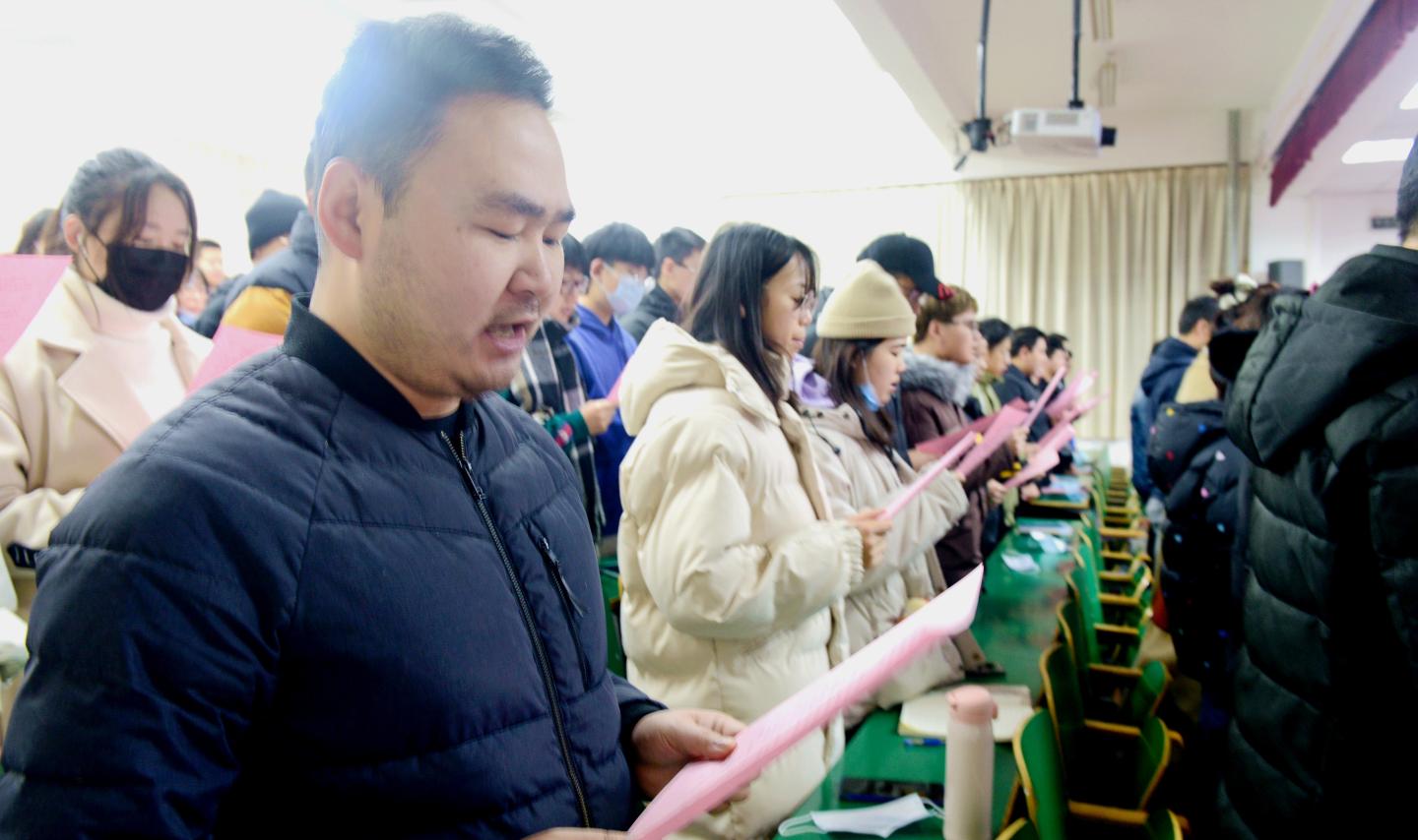 ——組織參加國(guó)家憲法日“憲法晨讀”活動(dòng)。12月4日上午,校黨委副書(shū)記劉勇,宣傳部、學(xué)工部、團(tuán)委負(fù)責(zé)人,和馬克思主義學(xué)院法學(xué)專業(yè)教師、二級(jí)學(xué)院師生代表190人,在1號(hào)樓報(bào)告廳二共同收看、參與了教育部普法網(wǎng)平臺(tái)直播的“憲法晨讀”活動(dòng)。上午9:00,全體起立,跟隨直播現(xiàn)場(chǎng)行注目禮、唱國(guó)歌、跟讀憲法條款內(nèi)容,與北京主會(huì)場(chǎng)同唱《憲法伴我們成長(zhǎng)》歌曲,觀看了優(yōu)秀學(xué)生代表的現(xiàn)場(chǎng)展演。大家表示,通過(guò)參加晨讀活動(dòng),進(jìn)一步強(qiáng)化了憲法意識(shí),增強(qiáng)了愛(ài)國(guó)主義情感,我們要帶頭學(xué)習(xí)、宣傳憲法內(nèi)容,讓憲法精神在校園扎根。