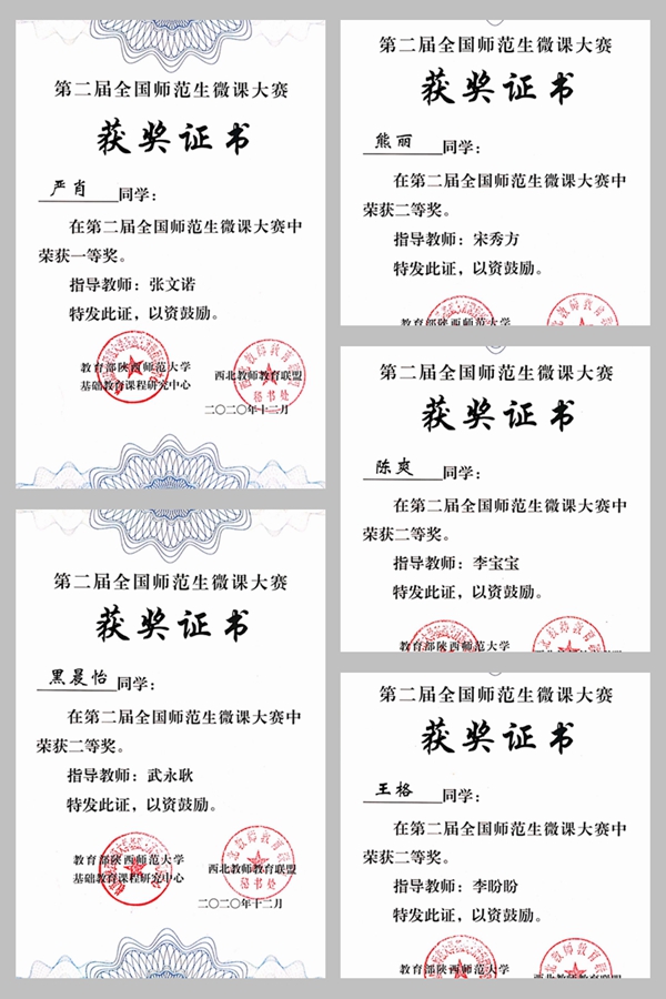 全國師范生微課大賽由教育部陜西師范大學基礎教育課程研究中心聯(lián)合西北教師教育聯(lián)盟舉辦,大賽旨在進一步推進新媒體、新技術深入應用,促進數(shù)字教育資源共建共享,提高師范生信息化教學能力,加快信息技術與教育教學深度融合。大賽自2020年9月啟動以來,共有20多個省市及自治區(qū)的100余所高校參賽,比賽共計提交1424份作品,包括語文、數(shù)學、政治、物理等16個類目。
