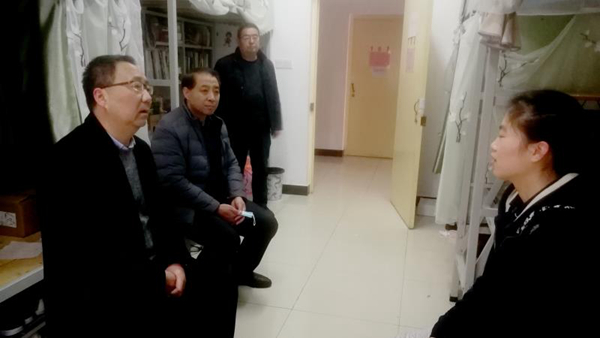 1月27日,校黨委書(shū)記龍治剛、副校長(zhǎng)王新軍在黨委辦公室·院長(zhǎng)辦公室和后勤保障處相關(guān)負(fù)責(zé)人的陪同下,前往學(xué)生宿舍看望慰問(wèn)寒假期間因疫情滯留在校的2名(石家莊籍、邢臺(tái)籍)學(xué)生。