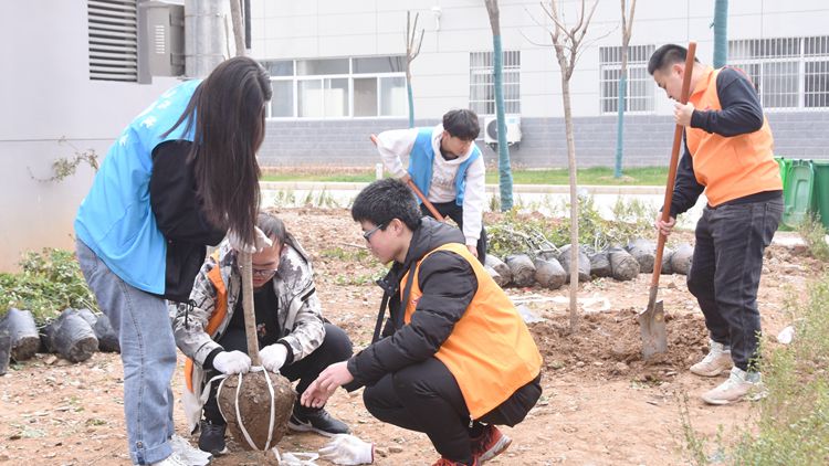 陽(yáng)春三月,春風(fēng)涌動(dòng),又是一年添綠時(shí)。為迎接第43個(gè)植樹(shù)節(jié)的到來(lái),進(jìn)一步打造綠色校園環(huán)境,引導(dǎo)廣大師生樹(shù)立環(huán)境保護(hù)意識(shí)和生態(tài)文明理念,我校積極動(dòng)員、精心組織教職員工及學(xué)生志愿者開(kāi)展義務(wù)植樹(shù)活動(dòng),為丹江校區(qū)增綠添彩,以實(shí)際行動(dòng)踐行“綠水青山就是金山銀山”的理念。