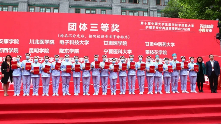 全國(guó)大學(xué)生醫(yī)學(xué)技術(shù)技能大賽被稱(chēng)作醫(yī)學(xué)生的“奧林匹克賽”,今年首次設(shè)置護(hù)理學(xué)專(zhuān)業(yè)賽道。大賽秉承“尚德精術(shù)培育卓越人才,中西并重共筑健康中國(guó)”的宗旨,旨在推進(jìn)護(hù)理實(shí)踐教學(xué)改革、創(chuàng)新實(shí)踐教學(xué)體系。本次西南西北分區(qū)賽歷時(shí)2天,共有來(lái)自云南、貴州、西藏、新疆、陜西、甘肅、青海、寧夏、重慶、四川10個(gè)省市自治區(qū),41所高等院校的選手參加比賽。