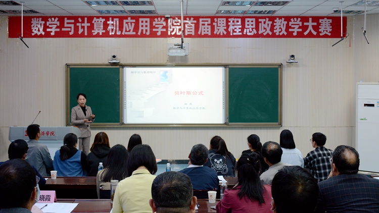 為進一步深化課程思政教學改革,充分挖掘提煉各類課程蘊含的思政要素和德育功能,4月28日,數計學院舉辦了首屆課程思政教學大賽決賽。副校長劉寶盈教授,第三屆陜西高校課堂教學創(chuàng)新大賽一等獎獲得者、西安電子科技大學謝琨教授擔任大賽特邀評委。