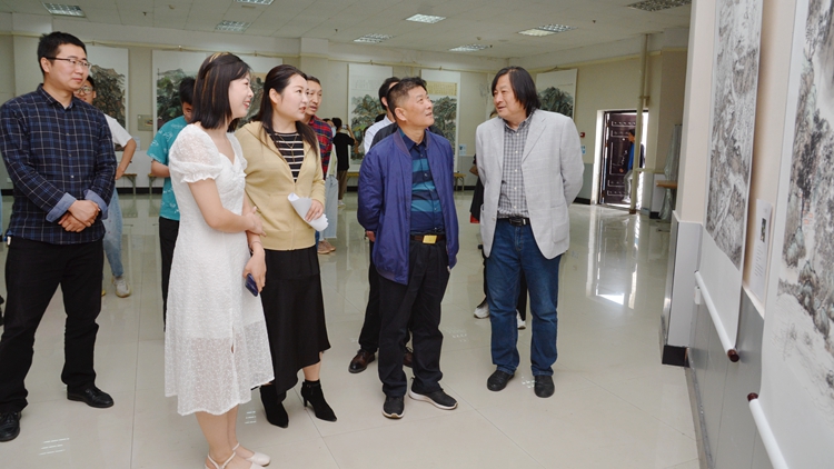 開幕式結束后,范新會在相關負責人的陪同下參觀了畫展,并與創(chuàng)作學生進行了親切交流。