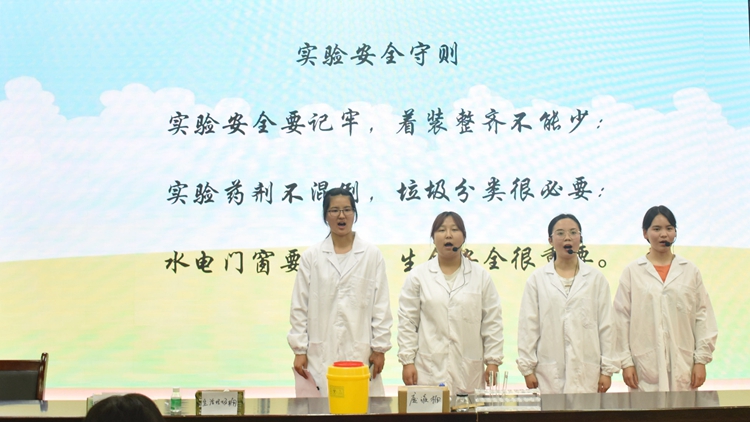 魏彩霞在報(bào)告中以“安全試驗(yàn),快樂探索”為主題,用生動(dòng)的語言、鮮活的事例介紹了實(shí)驗(yàn)室用水、用電、用氣、用火、試劑安全、廢液處理、人身防護(hù)等實(shí)驗(yàn)室安全知識(shí),強(qiáng)調(diào)了實(shí)驗(yàn)室安全的重要性,提醒師生重視實(shí)驗(yàn)室安全防范。 護(hù)理學(xué)1901班的蘇煥敏等4名同學(xué)表演了實(shí)驗(yàn)室安全操作情景劇,通過錯(cuò)誤操作與規(guī)范演示的對(duì)比,向師生們展示了實(shí)驗(yàn)室安全操作中的注意事項(xiàng),加深了大家對(duì)實(shí)驗(yàn)安全的認(rèn)知。