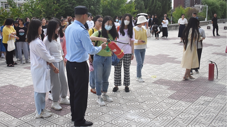 報(bào)告結(jié)束后,參會(huì)師生集體來到二號(hào)樓北側(cè)平臺(tái),由保衛(wèi)處治安科科長張柯講解演示了滅火器的相關(guān)知識(shí)及使用方法,并現(xiàn)場(chǎng)指導(dǎo)師生正確使用滅火器。