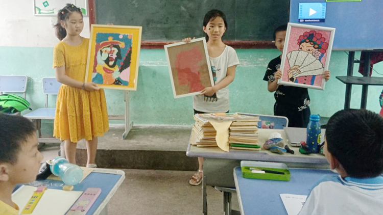 活動中,師生為該校留守兒童贈送了圖畫本、鉛筆、橡皮等繪畫用品。向小朋友們展示了校藝術(shù)學院學生制作的泥塑、石頭畫、剪紙拼畫、電腦繪畫等美術(shù)作品,拓展了小朋友們的審美視野,增強了大家的邏輯思維與形象思維能力,激發(fā)了大家熱愛美、發(fā)現(xiàn)美、追求美的熱情。師生還進行了“T恤衫彩繪”現(xiàn)場學創(chuàng)實踐,用美術(shù)實踐與T恤衫繪畫相結(jié)合的教學方式,鼓勵和引導小朋友們嘗試多樣思維和多元表現(xiàn),進一步增強了大家的實踐創(chuàng)作能力。在我校師生一對一、手把手的耐心講解與悉心指導下,每個小朋友都獨立完成了精美的美術(shù)作品。