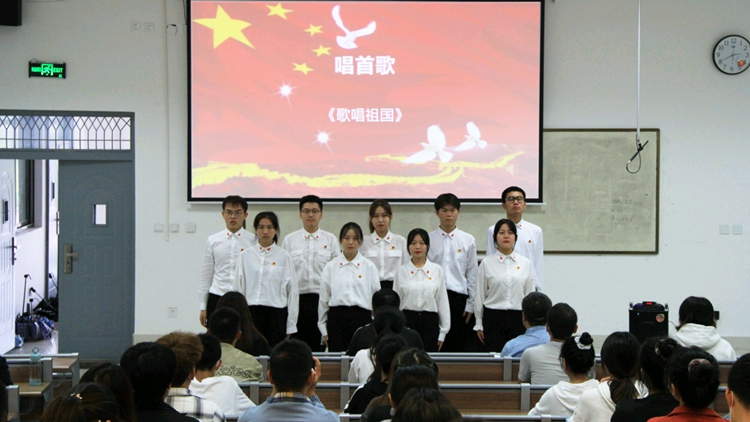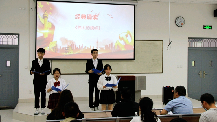 活動開始,同學們誦讀了一曲歌頌黨的史詩——《偉大的旗幟》,唱響紅色經(jīng)典《歌唱祖國》,獻禮建黨百年華誕。大家在鏗鏘有力的誦讀聲和嘹亮的歌唱聲中,共同回憶黨的輝煌歷史,感悟信仰的偉力,堅定了聽黨話、跟黨走的信心,燃燒了愛國主義激情,唱響了時代最強音——強國有我。