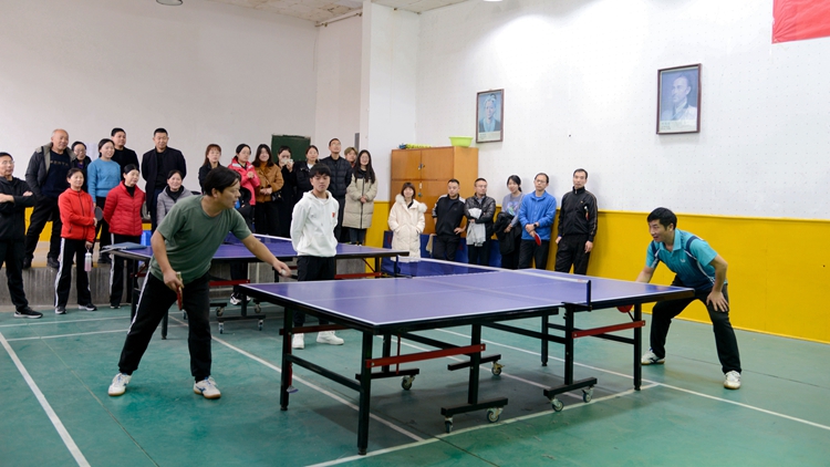 彭虎軍在致辭中指出,本次乒乓球比賽,是在全國上下認真學習貫徹黨的十九屆六中全會精神之際,是在陜西省成功舉辦十四運不久舉辦的一次體育盛會。比賽籌備以來,各分會高度重視,廣大職工踴躍參與,比賽期間,全體運動員發(fā)揚“更高、更快、更強、更團結”的奧運精神,不畏困難、頑強拼搏,賽出了風格、賽出了水平、賽出了友誼,取得了體育競技和精神文明的雙豐收。彭虎軍強調,乒乓球是中國的國球,在我校有著廣泛的群眾基礎。打乒乓球,不僅可以強健體魄、磨練意志,還能培養(yǎng)團隊精神,增進職工之間的友誼。他希望大家以本次比賽為契機,愛上體育鍛煉,積極參加群眾性陽光體育活動,并把比賽中表現(xiàn)出的頑強拼搏、永不服輸、團結合作、積極進取的精神帶到今后的工作和生活中去,以更加飽滿的熱情、昂揚的斗志、拼搏的精神、團結的力量,為把學校早日建成“一流學院”而努力奮斗。