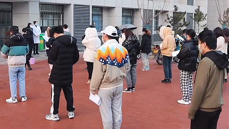 按照學(xué)校統(tǒng)一安排,師生前往核酸檢測(cè)點(diǎn),按照疫情防控工作要求進(jìn)行有序采樣。