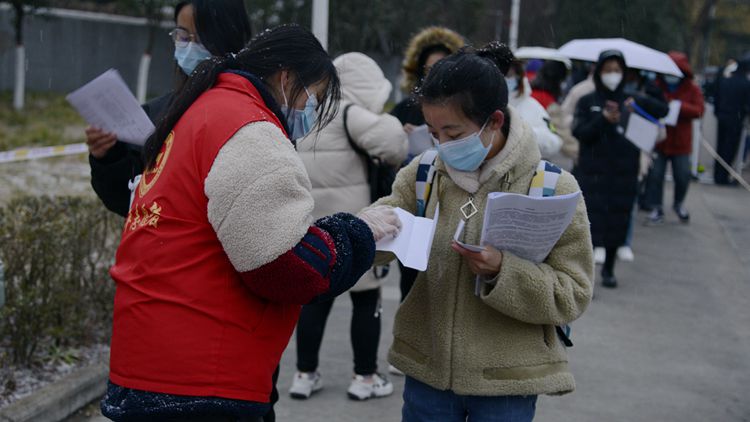 挺身而出,發(fā)揮黨員先鋒作用。因借考考生人數(shù)增加,考務(wù)工作量增大,校黨委22日晚向全校黨員發(fā)出號召,征集35名黨員志愿者填補考務(wù)人員缺口。全體黨員踴躍報名,于當(dāng)晚23:00前征集志愿者110余人,參與到丹江校區(qū)隔離考場監(jiān)考和考務(wù)工作中。4名黨員馳奔西安外事學(xué)院,為我校報考點滯留在西安的39名考生開辟考場、組織考試。6名黨員義務(wù)投入個人車輛,設(shè)立黨員先鋒崗,隨時待命應(yīng)對突發(fā)事件。25日上午8:23,一名校外考生因不熟悉環(huán)境,錯到北新街校區(qū)參加考試,我校黨員志愿者了解情況后,會同公安人員以最快速度將考生直送丹江校區(qū),使其能夠按時參加考試。學(xué)校招生志愿者協(xié)會和青年志愿者協(xié)會安排65名學(xué)生,協(xié)助查驗入場憑證和考場引導(dǎo)等工作。他們凌晨6點準(zhǔn)時到崗,在風(fēng)雪中堅守職責(zé),用實際行動踐行“黨旗所指就是團旗所向”的使命。