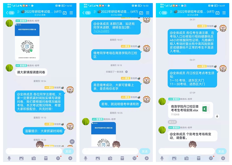 勇?lián)?zé)任,精心組織考務(wù)工作。由于疫情影響,部分原考點在中高風(fēng)險地區(qū)的考生無法前往考試,省教育考試院陸續(xù)安排我校借考考生從124人增加到778人,給考務(wù)工作帶來極大壓力。學(xué)校勇?lián)?zé)任,科學(xué)制定考務(wù)工作、疫情防控、后勤保障等各項預(yù)案。積極聯(lián)系地方政府和公安機關(guān),由商州區(qū)公安分局開通綠色通道,安排公安人員與校內(nèi)安保、考務(wù)人員全程押運,連續(xù)兩天前往試題印制及中轉(zhuǎn)地點領(lǐng)取借考考生試卷。最后一批試卷于25日凌晨4:30領(lǐng)回,十余名考務(wù)人員通宵等待、連夜分揀,確保第一場考試按時順利開考。負(fù)責(zé)借考考生咨詢QQ群的工作人員隨時關(guān)注政策變化,24小時在線為考生解惑答疑。一位借考考生表示,多虧學(xué)校工作做得細(xì)致,我們才能及時了解考試安排,懸著的心也放了下來。