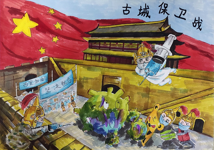 本次抗疫主題文藝作品征集活動(dòng)由陜西省漫畫(huà)協(xié)會(huì)、省委宣傳部、省文聯(lián)共同組織。我校學(xué)生在認(rèn)真落實(shí)疫情防控各項(xiàng)措施的同時(shí),用手中的畫(huà)筆為陜西抗疫搖旗吶喊、鼓勁加油。用漫畫(huà)作品致敬戰(zhàn)斗在防疫一線的廣大醫(yī)護(hù)工作者、各級(jí)志愿者和有關(guān)工作人員,鼓舞群眾抗疫士氣。用漫畫(huà)語(yǔ)言普及防疫知識(shí)、宣傳防疫政策、鼓舞抗疫斗志,匯聚萬(wàn)眾一心抗擊疫情的強(qiáng)大精神合力,為陜西奪取本輪疫情防控遭遇戰(zhàn)、阻擊戰(zhàn)的勝利注入了滿滿的正能量。