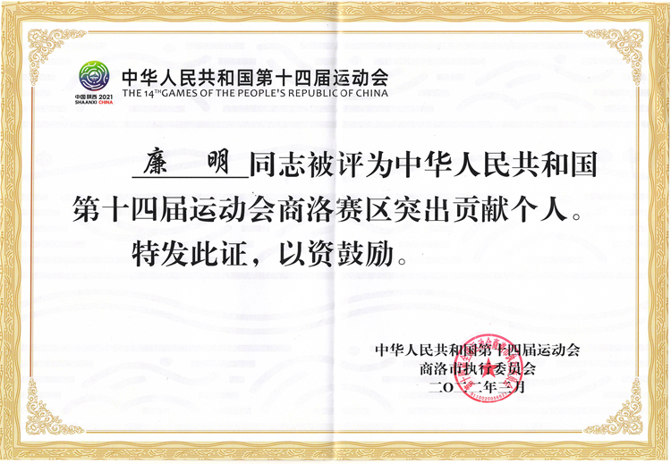 我校榮獲十四運(yùn)會(huì)商洛賽區(qū)籌辦工作突出貢獻(xiàn)單位,一名教師獲評(píng)突出貢獻(xiàn)個(gè)人