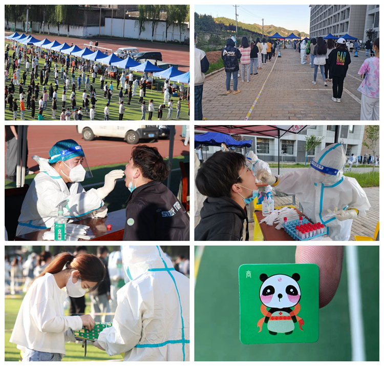 當(dāng)天清晨,校領(lǐng)導(dǎo)親赴現(xiàn)場(chǎng)指導(dǎo)工作。全體人員全程佩戴口罩,間隔一米整齊排隊(duì),攜帶個(gè)人健康碼,分批次、分時(shí)段進(jìn)入信息采集區(qū)和核酸采樣區(qū),配合醫(yī)護(hù)人員完成采樣工作,領(lǐng)取“秦嶺四寶·熊貓貼”后有序離開現(xiàn)場(chǎng)。檢測(cè)現(xiàn)場(chǎng)秩序井然,各項(xiàng)工作有條不紊。經(jīng)歷2小時(shí)20分鐘,全體師生員工(含各部門臨聘人員、環(huán)衛(wèi)、食堂、超市、浴室、快遞、打印、理發(fā)等從業(yè)人員、在校居住教職工家屬及離退休職工)核酸檢測(cè)采樣順利結(jié)束。