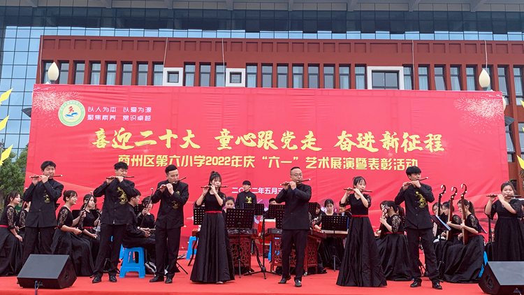 5月27日和31日,我校附屬小學和幼兒園分別舉辦了“喜迎二十大、共育花成長”和“喜迎二十大、童心跟黨走、奮進新征程”主題藝術展演活動。副校長王新軍和學校發(fā)展規(guī)劃處、藝術學院負責人出席活動。藝術學院民族管弦樂團為附屬小學師生表演了《象王行》《權(quán)御天下》《揚鞭催馬運糧忙》等民樂節(jié)目,共同歡慶孩子們的節(jié)日。