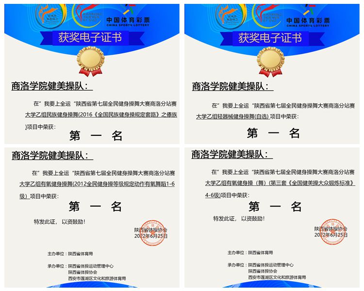 近期,陜西省第七屆全民健身操舞線上比賽圓滿落幕。我校派出由12名學(xué)生組建的健美操隊參加比賽,分別獲得大學(xué)乙組民族健身操舞(傣族舞)一等獎、輕器械健身操舞(自選)一等獎、有氧舞蹈一等獎及全國健美操大眾鍛煉標(biāo)準(zhǔn)(4-6級)一等獎的優(yōu)異成績,體育教學(xué)研究部教師張馨嬌被評為“優(yōu)秀教練員”。