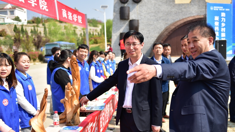 4月1日,以“凝聚科技力量,助力鄉(xiāng)村振興”為主題的商洛市第三十一屆“科技之春”宣傳月暨商洛學院“雙百工程”啟動儀式主場示范活動在丹鳳縣棣花鎮(zhèn)舉辦。商洛市委常委、副市長孫舉恒,我校副校長王新軍,商洛市科協(xié)主席黃恒林,丹鳳縣委副書記王小寧出席活動。我??萍继帯⑺囆g學院相關負責人,45名志愿者、丹鳳縣25家成員單位以及500余名群眾參加活動。