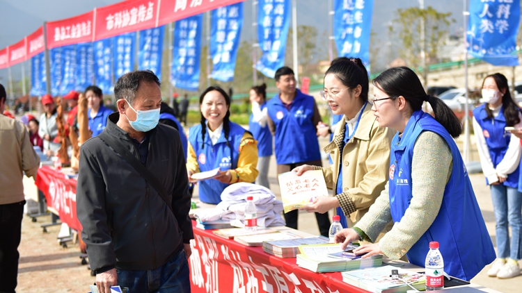 我校健康管理學院、生物學院的師生以“情景劇+講解”的形式,為現(xiàn)場群眾開展心肺復蘇訓練、農作物栽培、中草藥種植、健康膳食、老年護理等方面的科普宣傳活動。來自藝術學院的師生聲情并茂地表演了花鼓戲、笛子演奏、歌伴舞等文藝節(jié)目,飽含商洛文化元素,同時展出的根雕藝術作品也為群眾帶來美的享受。通過現(xiàn)場發(fā)放800余份宣傳資料、開展有獎科學知識問答等宣傳形式,讓參與群眾在笑聲中感受商洛文化、學習科學知識,進一步激發(fā)了大家熱愛祖國、熱愛家鄉(xiāng)、崇尚科學的熱情。