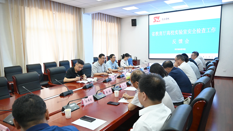 王新軍作表態(tài)發(fā)言。他表示學(xué)校虛心接受專家組提出的寶貴意見和建議,將嚴(yán)格按照教育廳要求,認(rèn)真開展“全過程、全要素、全覆蓋”的實(shí)驗(yàn)室安全自查自糾工作,不回避、不遮掩,針對(duì)專家組提出的問題立即整改,切實(shí)落實(shí),以檢促改,以檢促建,促進(jìn)學(xué)校實(shí)驗(yàn)室安全工作再上新臺(tái)階。