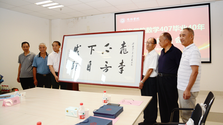 數(shù)學(xué)與計算機應(yīng)用學(xué)院書記廉明向校友們介紹了數(shù)計學(xué)院的發(fā)展?fàn)顩r。校友工作處副處長任桂婷為校友們贈送了紀(jì)念品。校友代表向母校捐贈了書法作品,并向教師代表獻(xiàn)上鮮花。