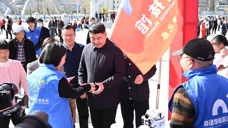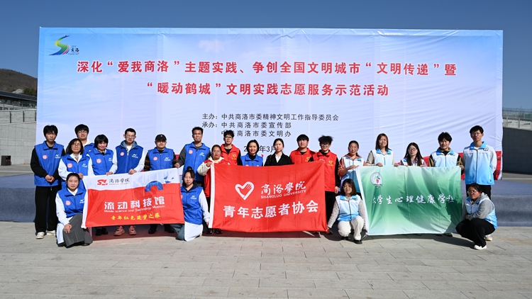 3月19日,商洛市深化“愛我商洛”主題實踐、爭創(chuàng)全國文明城市“文明傳遞”暨“暖動鶴城”文明實踐志愿服務(wù)示范活動在商鞅廣場舉行。我校“流動科技館”“大學生心理科普”2支志愿者服務(wù)團隊20余人參加現(xiàn)場文明實踐志愿服務(wù)活動。