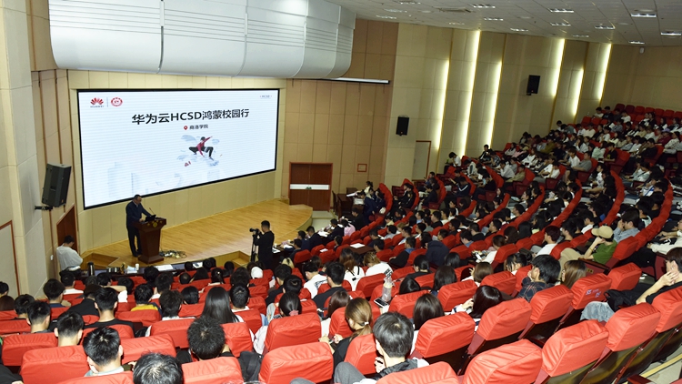 為深化我校師生對(duì)大數(shù)據(jù)及人工智能領(lǐng)域前沿技術(shù)、發(fā)展趨勢(shì)認(rèn)識(shí),助力學(xué)校數(shù)字產(chǎn)業(yè)人才培養(yǎng),4月23日,在商洛市委網(wǎng)信辦指導(dǎo)下,華為云公司在我校開展“華為云HCSD鴻蒙校園行”活動(dòng),與數(shù)計(jì)學(xué)院、電信學(xué)院、經(jīng)管學(xué)院300余名師生分享華為云及鴻蒙系統(tǒng)應(yīng)用生態(tài)。副校長劉寶盈、華為陜西公司副總經(jīng)理孫偉出席活動(dòng)并致辭。商洛市委網(wǎng)信辦副主任康明亮,我校學(xué)生處、教務(wù)處、科技處、信息化建設(shè)與管理處相關(guān)負(fù)責(zé)人參加活動(dòng)。活動(dòng)由黨委委員、宣傳部部長王霄飛主持。