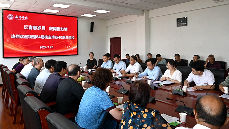 芳華四十載,難忘商院情。7月20日,我校物理84屆校友闊別40載后,從天南海北回母校團聚,重溫師生情誼,共話發(fā)展變遷。副校長王新軍陪同校友參觀校園并代表學校接受校友捐贈的牌匾。國內(nèi)合作與校友工作處、電信學院相關(guān)負責人及教師代表參加活動。座談會由電信學院黨委書記趙永平主持。