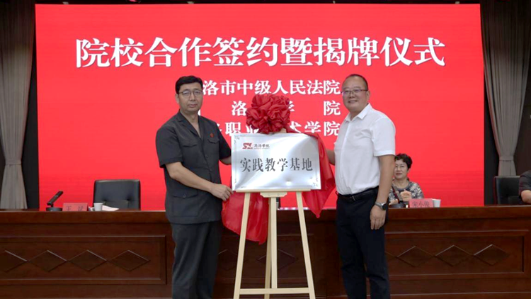 郭瑾和王斌分別代表校院雙方為商洛學(xué)院實(shí)踐教學(xué)基地揭牌,教務(wù)處處長王怡和商洛中院政治部主任郝亮分別代表校院雙方簽訂了校院共建合作協(xié)議。