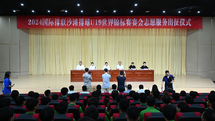 劉寶盈宣布2024國(guó)際排聯(lián)沙灘排球U19世界錦標(biāo)賽賽會(huì)志愿服務(wù)隊(duì)出征。