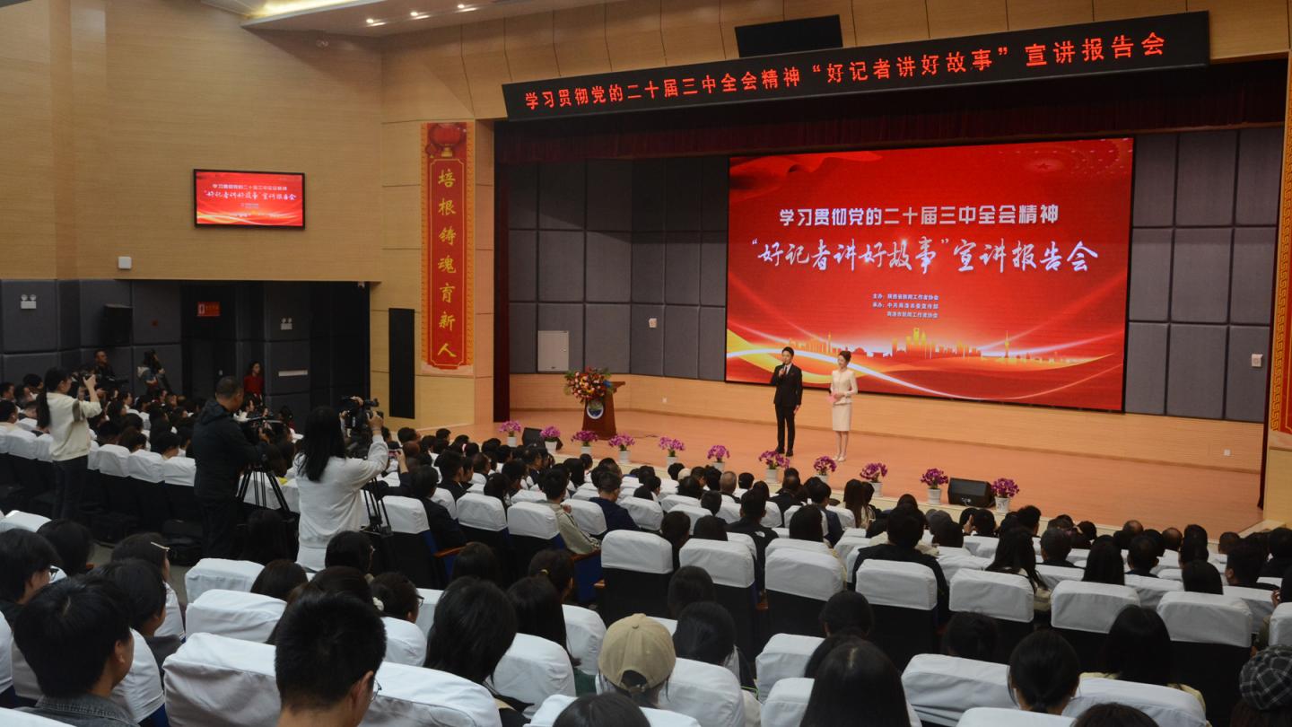 10月11日,由陜西省新聞工作者協(xié)會組建的“好記者講好故事”宣講團(tuán)在商洛中學(xué)開展“學(xué)習(xí)貫徹黨的二十屆三中全會精神‘好記者講好故事’”宣講會。商洛市委常委、宣傳部部長賈永安,省委宣傳部記協(xié)秘書處處長兼省新聞工作者協(xié)會秘書長周凱出席會議。我校師生代表共150余人參加報告會。