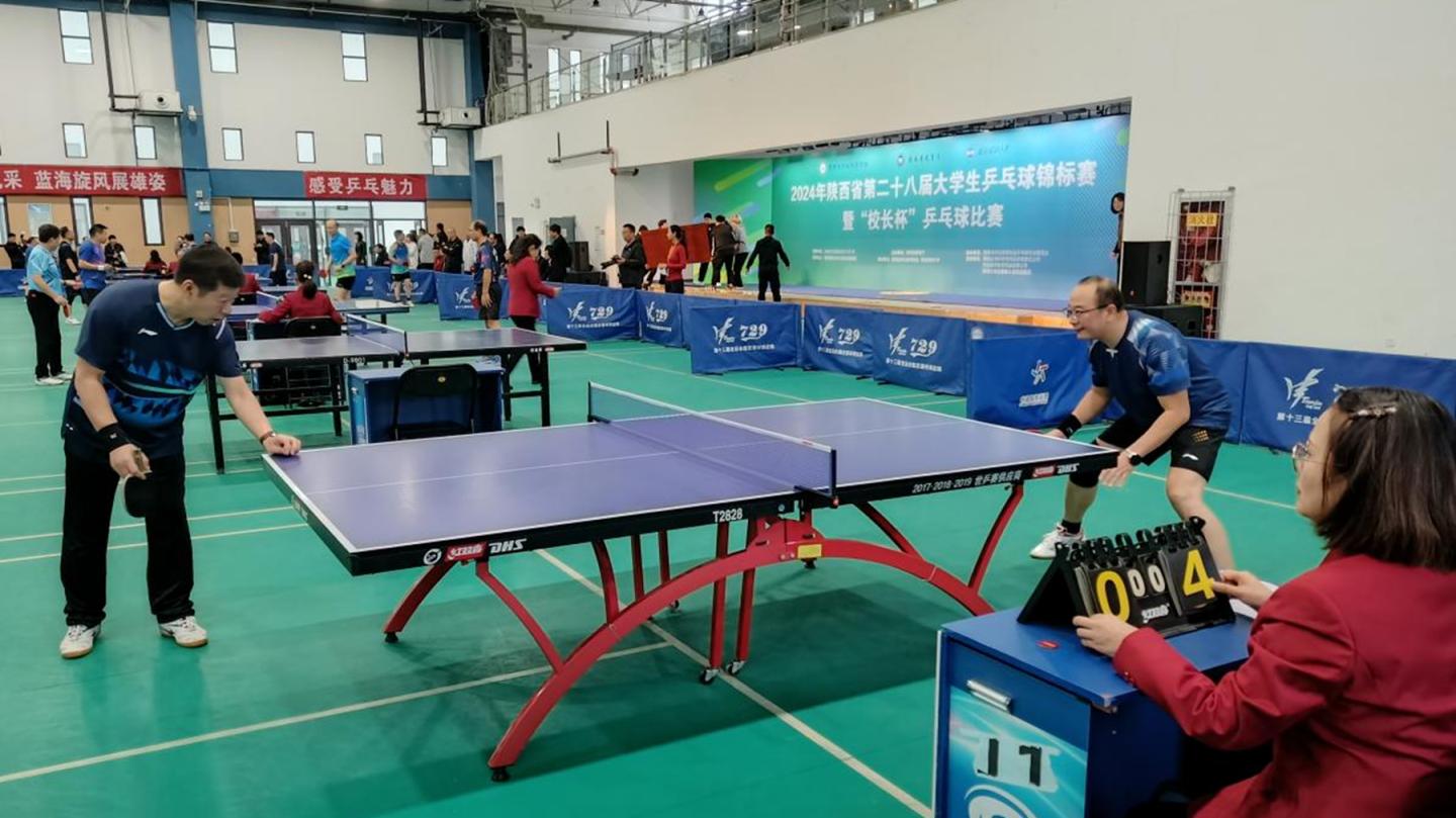 10月26日至27日,由陜西省教育廳主辦,陜西省學(xué)生體育協(xié)會(huì)、西安財(cái)經(jīng)大學(xué)承辦,陜西省學(xué)生體育協(xié)會(huì)乒乓球?qū)I(yè)委員會(huì)協(xié)辦的2024年陜西省第二十八屆大學(xué)生乒乓球錦標(biāo)賽暨“校長(zhǎng)杯”比賽在西安財(cái)經(jīng)大學(xué)舉行。副校長(zhǎng)劉寶盈、王新軍、郭瑾參加“校長(zhǎng)杯”甲組團(tuán)體比賽和單打比賽。