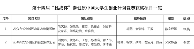 本屆競(jìng)賽由共青團(tuán)中央、教育部、人力資源和社會(huì)保障部、中國(guó)科協(xié)、全國(guó)學(xué)聯(lián)、陜西省人民政府聯(lián)合主辦,西安交通大學(xué)、共青團(tuán)陜西省委承辦,設(shè)置主體賽及“一帶一路”國(guó)際邀請(qǐng)賽、“秦創(chuàng)原”創(chuàng)新挑戰(zhàn)賽2項(xiàng)配套交流活動(dòng)。此次競(jìng)賽共吸引來(lái)自2700余所高校的300多萬(wàn)名學(xué)生參與,累計(jì)提交39萬(wàn)余個(gè)創(chuàng)新創(chuàng)業(yè)項(xiàng)目。經(jīng)過(guò)各學(xué)校初賽、各省復(fù)賽,共有412所國(guó)內(nèi)高校、14所國(guó)際高校的839個(gè)項(xiàng)目進(jìn)入全國(guó)決賽終評(píng),最終在“秦創(chuàng)原”創(chuàng)新挑戰(zhàn)賽中,我校推薦的項(xiàng)目《AI分布式全域污水動(dòng)態(tài)監(jiān)測(cè)系統(tǒng)》獲銀獎(jiǎng)、《流動(dòng)科技館-山區(qū)科普教育先行者》獲銅獎(jiǎng)。