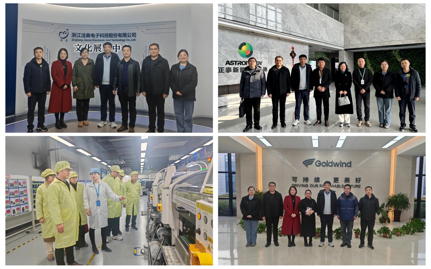 在湖州市安吉縣人社局相關(guān)負(fù)責(zé)人和商洛學(xué)院駐湖州就業(yè)人才工作聯(lián)絡(luò)處負(fù)責(zé)人高擴昌的帶領(lǐng)下,陳垚一行先后參觀考察了湖州市安吉縣一么么科技(浙江)有限公司、浙江潔美電子科技股份有限公司、杭州洲鉅電子科技有限公司等3家企業(yè)。在江蘇鹽城,陳垚一行又先后前往鹽城正泰新能源科技有限公司、天合光能(鹽城大豐)有限公司、鹽城市大豐區(qū)人力資源與社會保障局、江蘇金風(fēng)科技有限公司、大豐阿特斯陽光電力科技有限公司、大豐區(qū)新型電力系統(tǒng)零碳產(chǎn)業(yè)園等6家單位考察調(diào)研,深入了解企業(yè)在電子信息、新能源等領(lǐng)域的發(fā)展現(xiàn)狀、技術(shù)創(chuàng)新以及市場前景,并就校企合作、人才培養(yǎng)、科研合作等方面與單位負(fù)責(zé)人進行了深入的交流探討。
