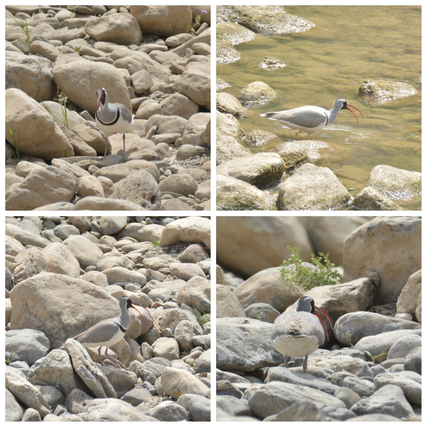 鹮嘴鷸屬于鸻形目鹮嘴鷸科鹮嘴鷸屬,是單型科單型屬(其科下僅有1屬,屬下僅有1種),因其緋紅色弧形長喙與朱鹮相像而得名。鹮嘴鷸生態(tài)位狹窄,種群密度低,非常罕見。鹮嘴鷸在中國物種紅色名錄(2004)中被列為無危(LC),在中國生物多樣性紅色名錄(2015)中被列為近危(NT)。據(jù)張博介紹,4月5日下午,調(diào)查團隊沿山陽縣金錢河徒步開展鳥類觀測時,偶然間在一個河心石島中發(fā)現(xiàn)了鹮嘴鷸,發(fā)現(xiàn)時這只鹮嘴鷸正在石灘中徘徊漫步并持續(xù)性高聲鳴叫,目測其體長為40厘米左右,毛發(fā)顏色和巖石極為接近,調(diào)查人員隨即用長焦鏡頭捕捉到了該鹮嘴鷸的影像。調(diào)查人員逐步到達河心島對面時,鹮嘴鷸受到輕微驚嚇,其鳴叫變得短促,走動步伐隨之加快,調(diào)查人員根據(jù)其外形和鳴叫方式判斷本次發(fā)現(xiàn)的是求偶階段的雄性鹮嘴鷸。