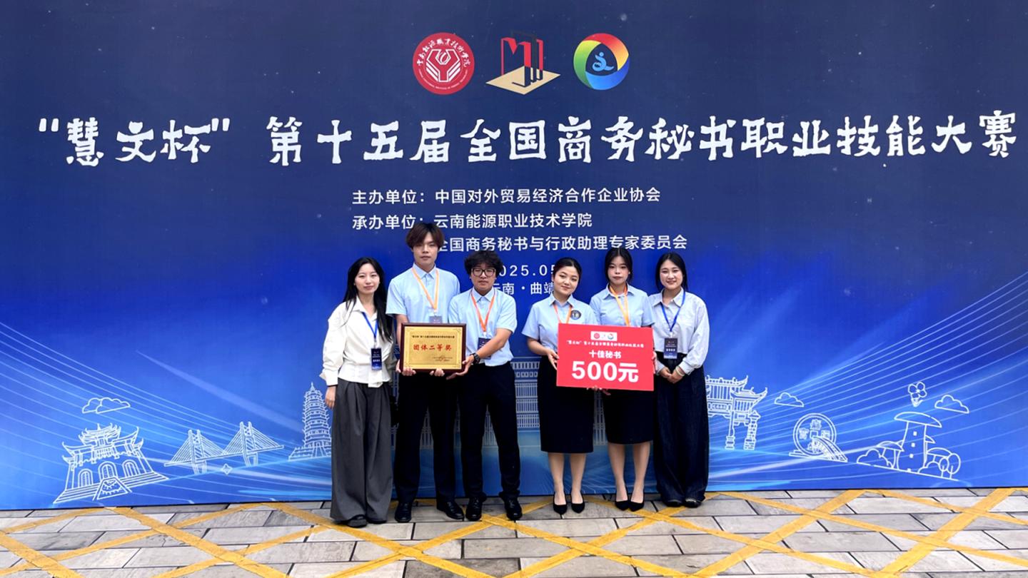 5月24日至25日,“慧文杯”第十五屆全國商務(wù)秘書職業(yè)技能大賽在云南舉行。由我校人文學(xué)院秘書系學(xué)生李瑞燕、姚佳、池一恒、任梓珩組成的參賽團(tuán)隊(duì),與來自全國66所高校的94支代表隊(duì)同臺競技,最終榮獲團(tuán)體二等獎,李瑞燕榮獲“十佳秘書”稱號,李瑞燕、池一恒榮獲秘書工作專項(xiàng)事務(wù)處理個人三等獎。人文學(xué)院秘書系教師郭妙、李炫橋、楊曉玲被評為“優(yōu)秀指導(dǎo)教師”。
