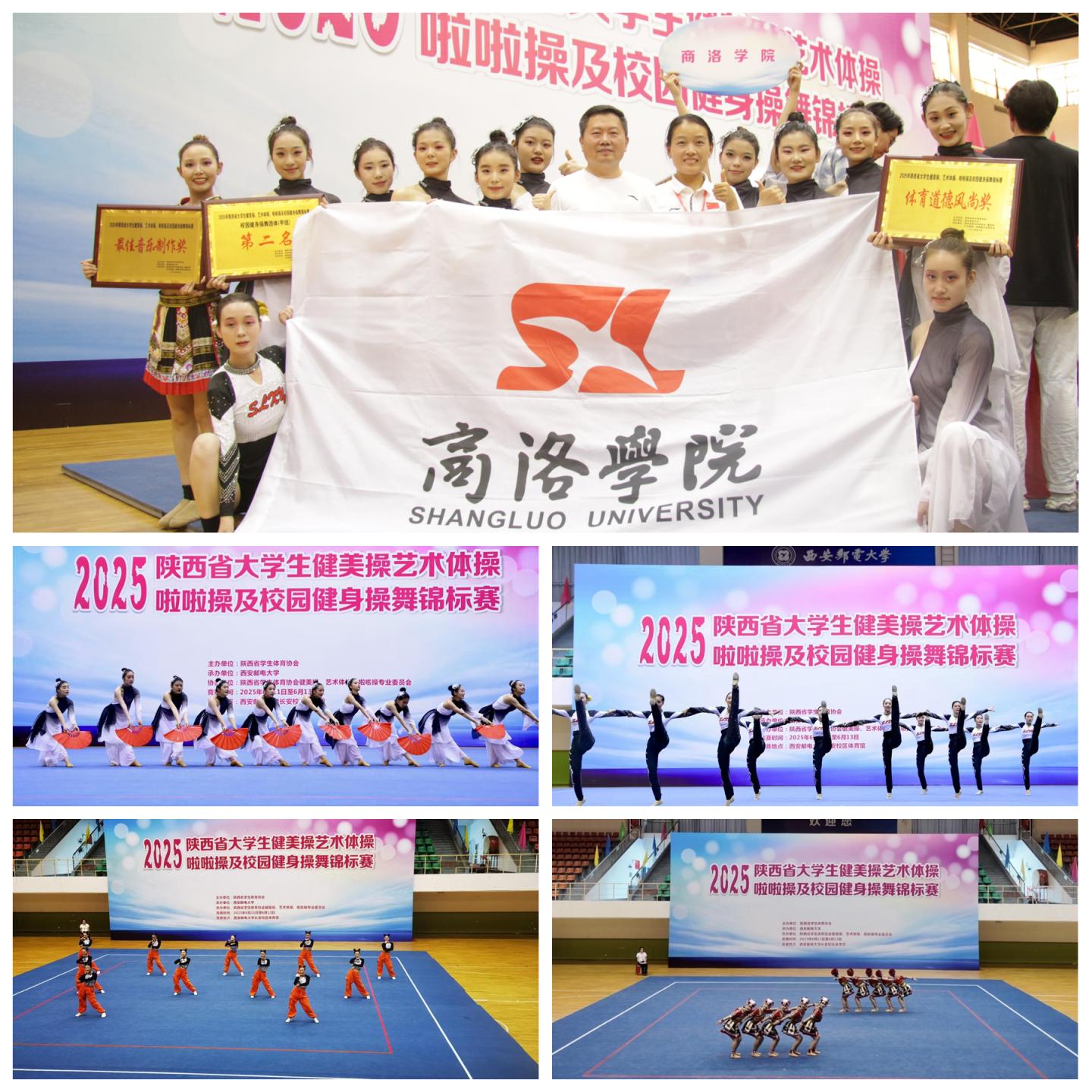 6月11日至12日,2025年陜西省大學(xué)生健美操、藝術(shù)體操、啦啦操及校園健身操舞錦標(biāo)賽在西安舉辦。我校參賽隊(duì)伍獲得團(tuán)體總分第二名和“體育道德風(fēng)尚獎(jiǎng)”“最佳音樂(lè)制作獎(jiǎng)”,在啦啦操規(guī)定動(dòng)作、健身舞、排舞自選等項(xiàng)目中獲得第一名2項(xiàng)、第二名1項(xiàng)、第四名1項(xiàng)。教練員張馨嬌獲評(píng)“優(yōu)秀教練員”稱號(hào)。