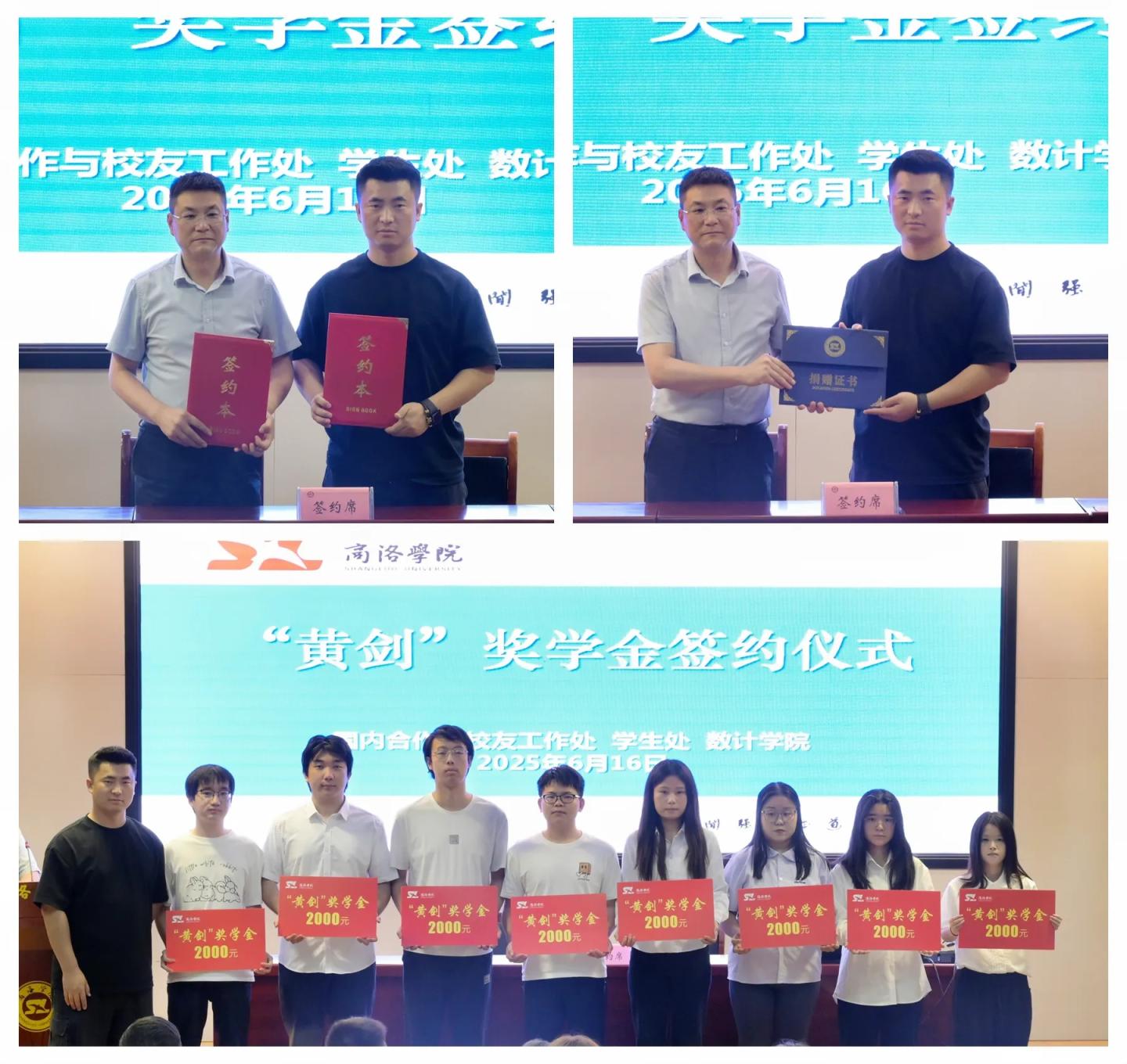 活動(dòng)期間,校企雙方簽訂了《獎(jiǎng)學(xué)金捐贈(zèng)協(xié)議》、頒授了《捐贈(zèng)證書(shū)》,黃劍現(xiàn)場(chǎng)為商洛學(xué)院2025年“黃劍獎(jiǎng)學(xué)金”獲獎(jiǎng)學(xué)生代表頒發(fā)了獎(jiǎng)學(xué)金。