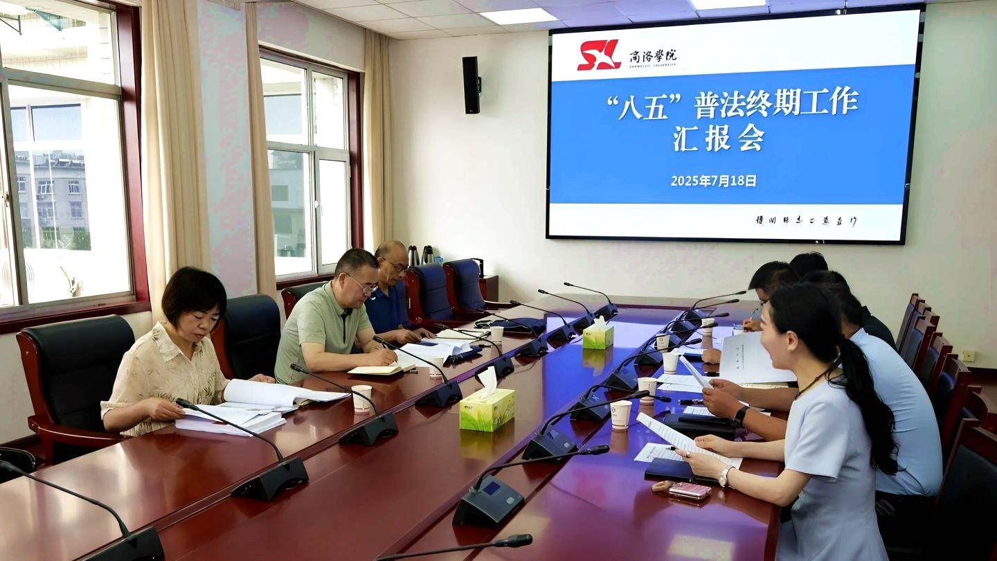 7月18日,商洛市“八五”普法總結驗收實地調研組成員,市委組織部四級調研員李海平、市中級人民法院四級調研員孫天峰、市委依法治市辦秘書科科長伍丹英一行3人來校開展“八五”普法終期檢查指導。黨委辦公室·院長辦公室、宣傳部、學生處、保衛(wèi)處等部門相關負責人參加匯報座談會。