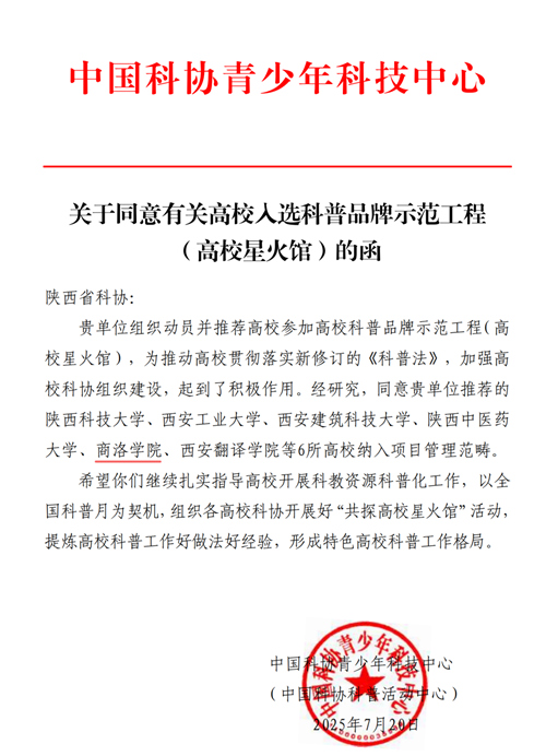 近日,中國(guó)科協(xié)青少年科技中心公布了高校科普品牌示范工程(高校星火館)入選名單,我校憑借在科普資源轉(zhuǎn)化、科普社會(huì)服務(wù)等工作中的突出表現(xiàn)成功入選,獲得國(guó)家級(jí)平臺(tái)的認(rèn)可與支持,標(biāo)志著我??破展ぷ鬟~上更高臺(tái)階。