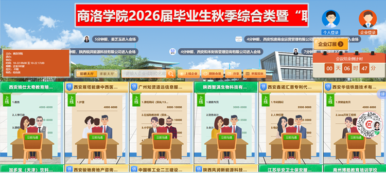 10月22日,我校舉辦2026屆畢業(yè)生秋季綜合類暨“職引未來”全國城市聯(lián)合招聘高校畢業(yè)生校園專場網(wǎng)絡(luò)視頻招聘會。招聘會共邀請華天科技(西安)有限公司、中國核工業(yè)二三建設(shè)有限公司、深圳慧通商務(wù)有限公司等高質(zhì)量用人單位260余家,累計為畢業(yè)生提供就業(yè)崗位4600余個。