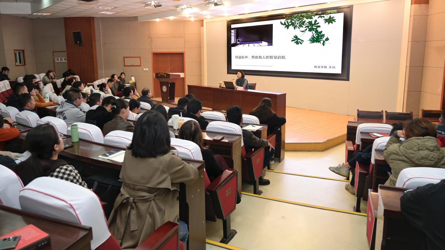 10月29日,作為“商苑金秋學術季”第5場報告會,我校陜西省教學名師、陜西省師德標兵王怡教授做客新入職教師培訓“名師講堂”,以《師道新聲:思政育人的智慧起航》為題作專題報告。本次活動吸引了我校近三年新入職教師及商洛職業(yè)技術學院2025年新入職教師在內(nèi)的100余人參與。