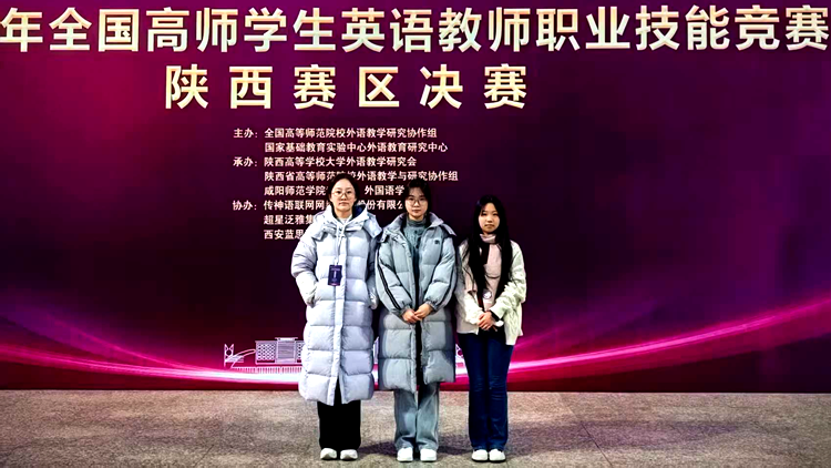 11月28日至29日,全國(guó)高師學(xué)生英語教師職業(yè)技能競(jìng)賽(陜西賽區(qū))決賽在咸陽師范學(xué)院圓滿落幕。我校3名英語專業(yè)學(xué)子與來自全省19所高校的214名選手同臺(tái)競(jìng)技,經(jīng)過激烈角逐,最終英語2401班陳可欣榮獲一等獎(jiǎng),英語2402班李嘉欣、英語2401班楊笑妍榮獲二等獎(jiǎng)。