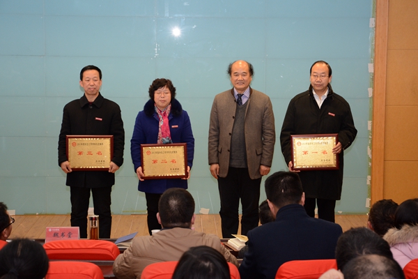 在熱烈的掌聲中,劉建林、魏書堂、彭虎軍分別為獲獎(jiǎng)集體和個(gè)人頒獎(jiǎng)。學(xué)生代表為優(yōu)秀班主任頒獎(jiǎng)。