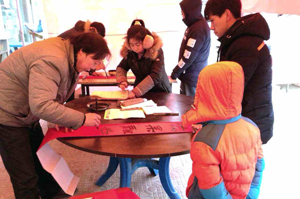 寫春聯(lián)、貼年畫是象征吉祥和向往美好生活的民風(fēng)民俗,更是中華民族代代相傳的悠久文化傳統(tǒng)。為即將臨近的猴年新春送上一年之始誠(chéng)摯的祈盼和祝福,為商洛大地喜迎佳節(jié)增添一份祥和歡慶的熱鬧景象,進(jìn)一步豐富我市鄉(xiāng)鎮(zhèn)群眾的新年文化生活,感受優(yōu)秀傳統(tǒng)文化延綿醇厚的藝術(shù)魅力,不斷提高藝術(shù)學(xué)院學(xué)生的專業(yè)應(yīng)用能力、社會(huì)適應(yīng)能力,砥礪意志品格,結(jié)合美術(shù)學(xué)專業(yè)的實(shí)踐與應(yīng)用,增強(qiáng)對(duì)社會(huì)公益活動(dòng)的參與意識(shí)和服務(wù)意識(shí),藝術(shù)學(xué)院連續(xù)第3年開展了寫春聯(lián)、送春聯(lián)下鄉(xiāng)服務(wù)群眾實(shí)踐活動(dòng),為群眾寫送春聯(lián)近5000副,贏得了各鄉(xiāng)鎮(zhèn)群眾的廣泛好評(píng)。
