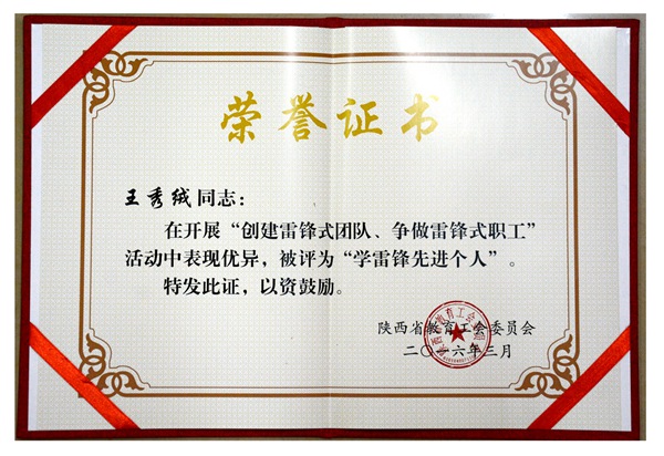 根據(jù)日前陜西省教育工會委員會下發(fā)的《關(guān)于“創(chuàng)建雷鋒式團隊、爭做雷鋒式職工”活動的表彰決定》,我校工會評選并推薦的人文社會科學(xué)學(xué)院心理服務(wù)志愿者團隊、人文社會科學(xué)學(xué)院歷史系主任王秀絨兩個學(xué)雷鋒先進典型,分別獲得陜西省高校“創(chuàng)建雷鋒式團隊、爭做雷鋒式職工”活動學(xué)雷鋒先進集體、先進個人榮譽稱號。