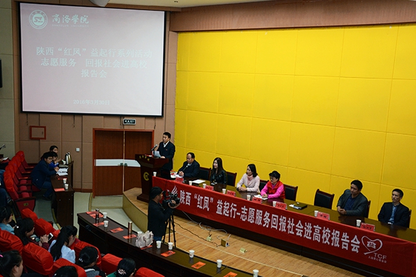 3月30日下午,“陜西紅鳳益起行——志愿服務(wù) 回報(bào)社會(huì)進(jìn)高?!眻?bào)告會(huì)在我校舉行。校黨委副書記彭虎軍,陜西紅鳳志愿者協(xié)會(huì)創(chuàng)辦人班理,商洛市婦聯(lián)副主席閆莉娜,商洛市文明辦副主任黃強(qiáng),學(xué)校青年志愿者協(xié)會(huì)成員,報(bào)告團(tuán)成員李麥青、孫洪軍以及巾幗志愿者代表,商洛市女企業(yè)家協(xié)會(huì)代表,在?!凹t鳳工程”受助生,我校輔導(dǎo)員、學(xué)生代表等450余人聆聽了報(bào)告。報(bào)告會(huì)由學(xué)工部部長(zhǎng)石啟英主持。