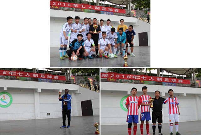 為進(jìn)一步推動(dòng)我校陽(yáng)光體育運(yùn)動(dòng),豐富校園體育文化生活,提高大學(xué)生競(jìng)技體育水平,我校舉辦了2016年“七人制”足球賽。本次比賽由體育教學(xué)研究部主辦,團(tuán)委和學(xué)生會(huì)協(xié)辦,各二級(jí)學(xué)院及教工組成10支代表隊(duì)共200余名運(yùn)動(dòng)員參賽。經(jīng)過(guò)兩周的激烈角逐,5月18日下午, 2016年“七人制”足球賽落下帷幕。最終,電子信息與電子工程學(xué)院獲得冠軍,城鄉(xiāng)規(guī)劃與建筑工程學(xué)院獲得亞軍,語(yǔ)言文化傳播學(xué)院和教工隊(duì)獲得季軍。