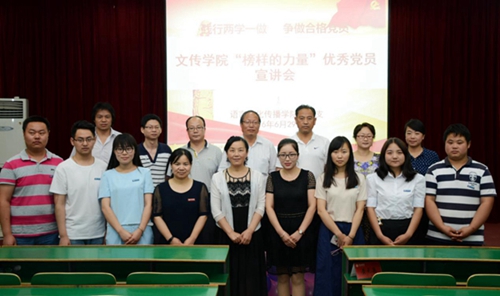 為了慶祝中國共產黨成立95周年,扎實推進“兩學一做”學習教育,樹立全體黨員的標桿意識,充分發(fā)揮身邊優(yōu)秀黨員的示范作用,6月29日,文傳學院黨總支召開“榜樣的力量”——優(yōu)秀黨員宣講會。4名優(yōu)秀教工黨員和7名優(yōu)秀學生黨員分別宣講了自己的先進事跡。