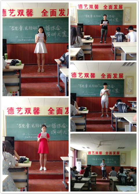 “學(xué)黨章,見行動”心得體會演講大賽。6月24日,學(xué)生第一、第二黨支部全體成員學(xué)習(xí)《習(xí)近平總書記在哲學(xué)社會科學(xué)工作座談會上的講話》等內(nèi)容,開展主題演講,用實際行動踐行“兩學(xué)一做”,向黨的生日獻禮。